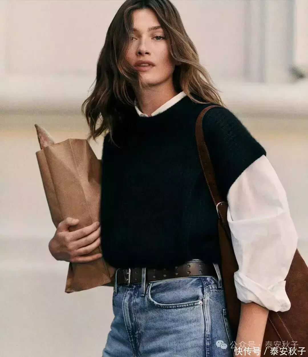 还要懂得用“马甲+衬衫”的穿搭,打造出一种不用力打扮就很美、很高级的时尚感。