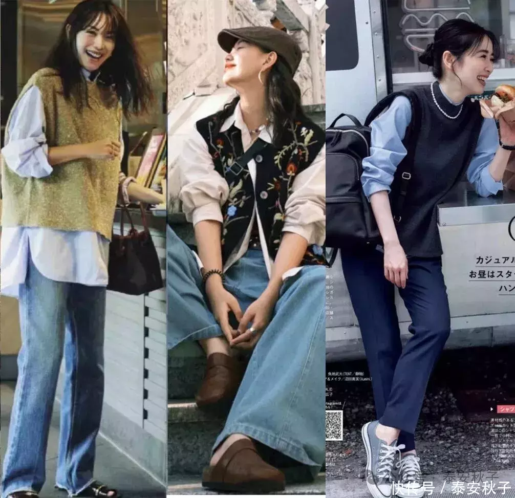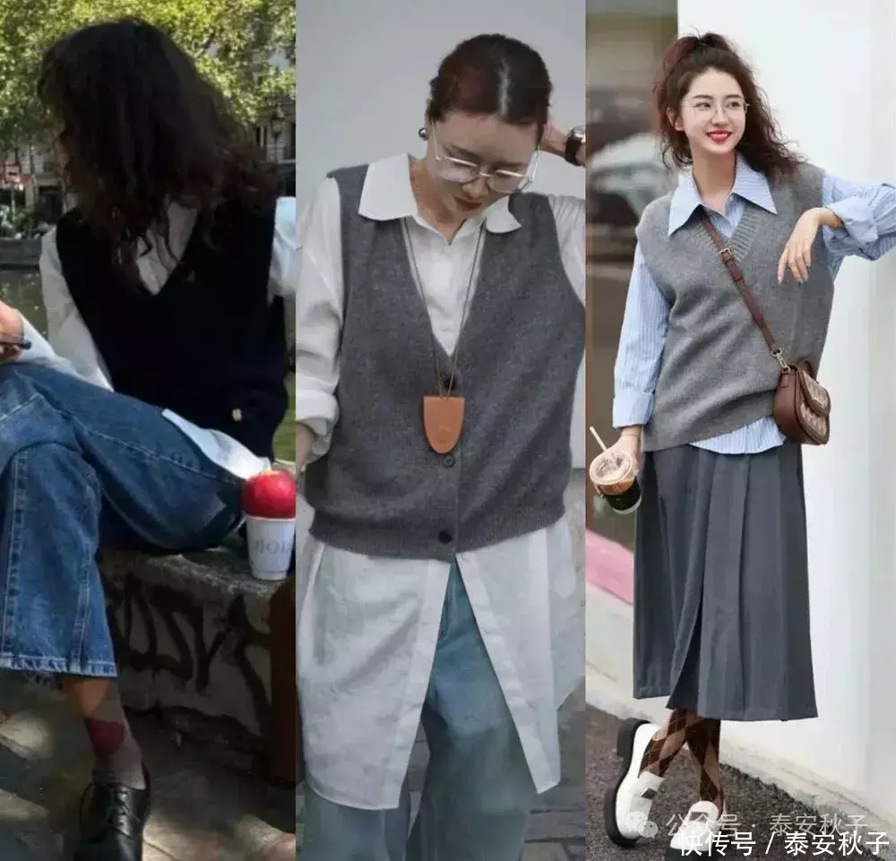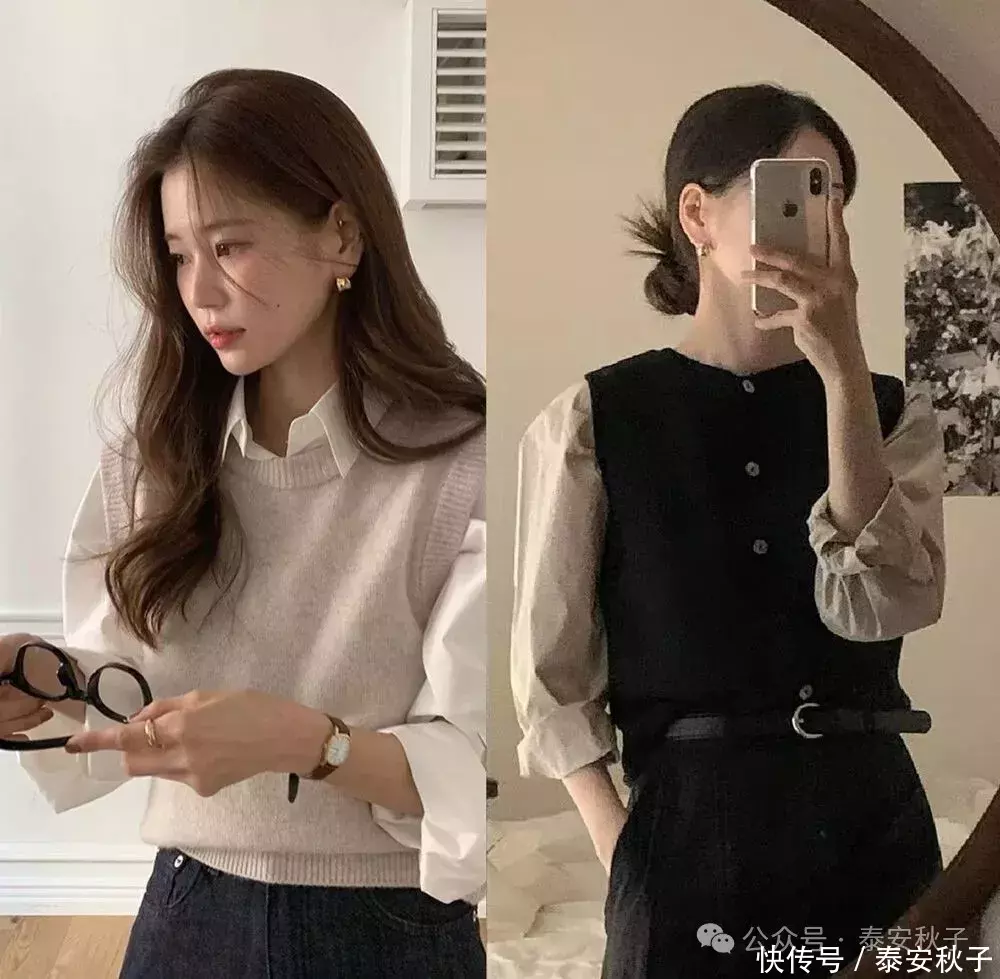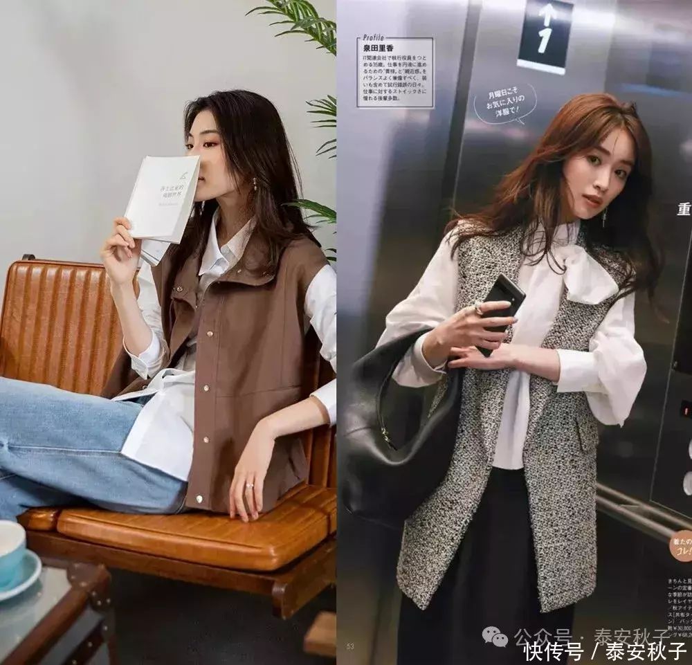 如果是职场女生,秋天上班时,也可以用衬衫配马甲穿。