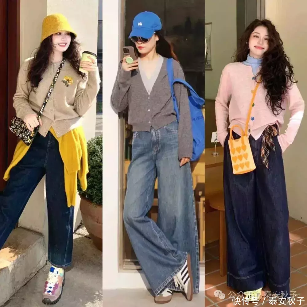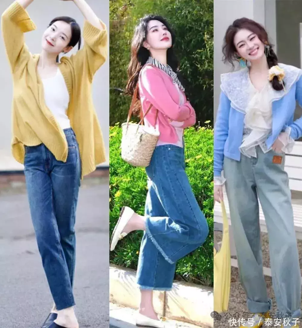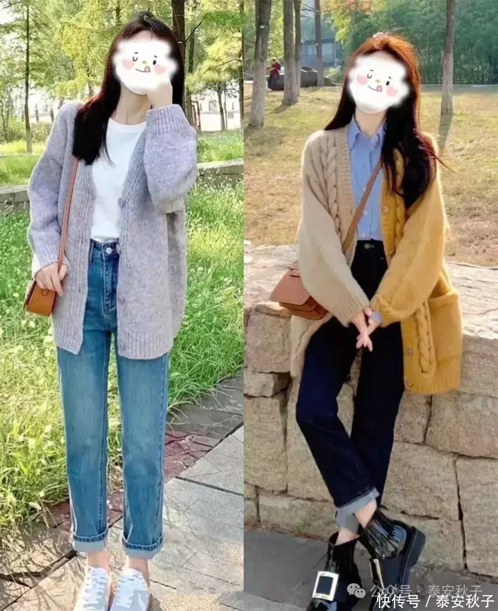 秋天里的开衫+牛仔裤穿搭,想要变得更青春时髦有活力一些?那就要给自己的开衫“上”点颜色了。